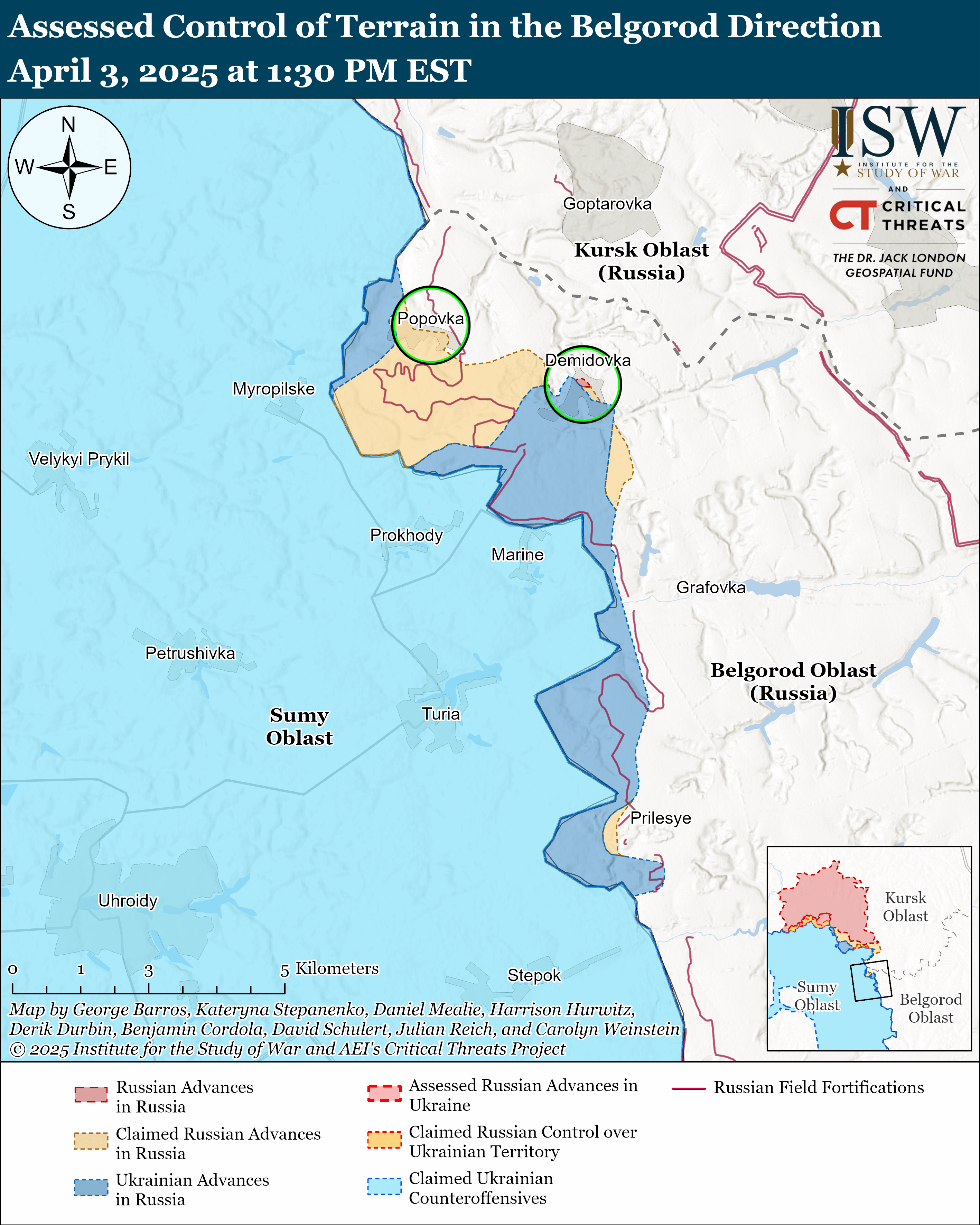 Боевые действия в Украине и России за 3 апреля / Карты ISW