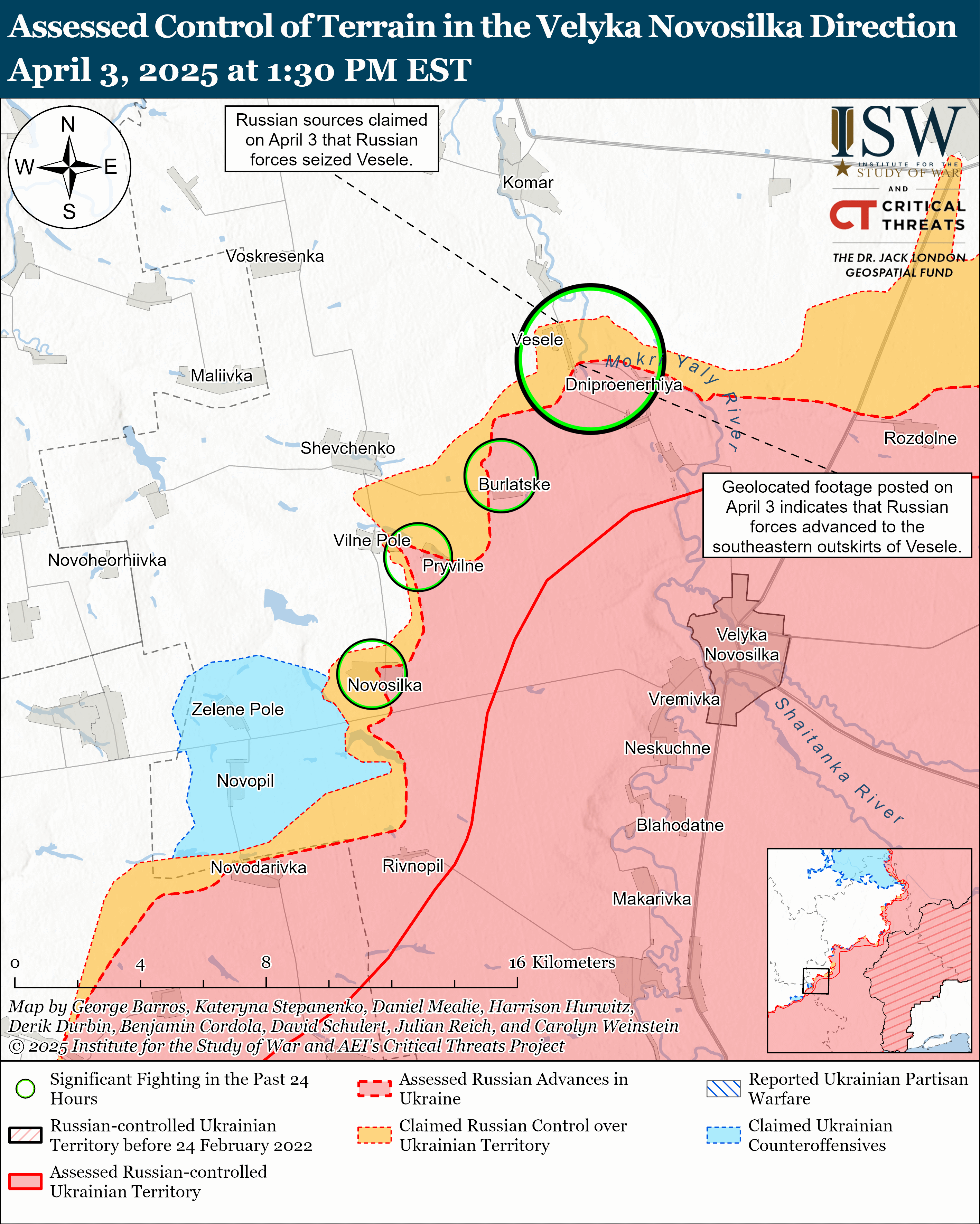 - Также российские войска продвинулись в направлении Великой Новоселки, в частности к юго-западной окраине Веселого. А вот в западной части Запорожской области ни одного подтвержденного продвижения оккупанты не сделали, как и на Херсонщине.