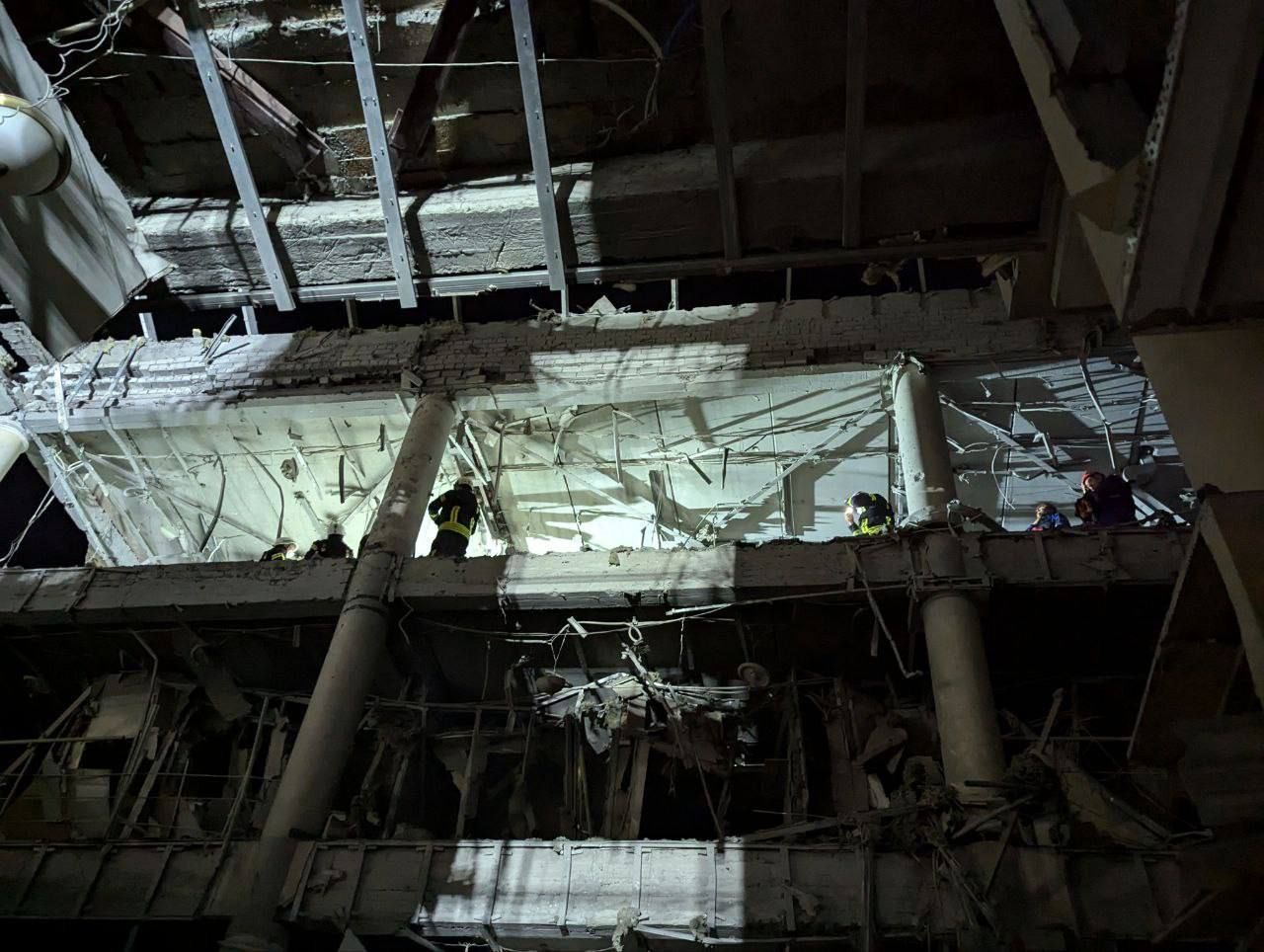 Кривой Рог... Очередное преступление россиян... Из-за атаки изуродован гражданский объект. Предварительно, одна погибшая и четверо раненых. Под завалами могут быть люди,