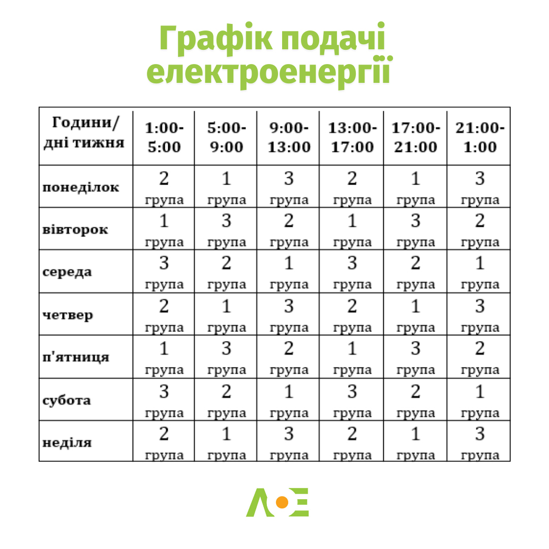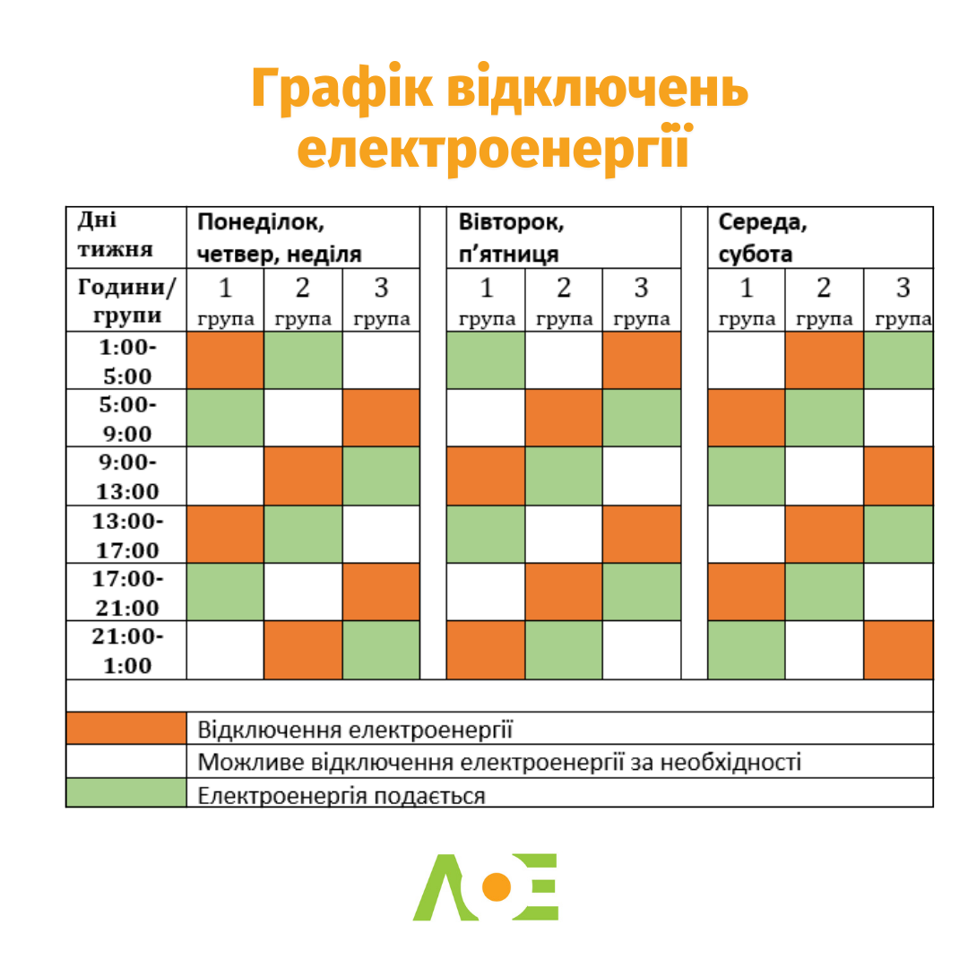 В области установлен предел мощности в пределах 64% от общей потребности, поэтому продолжает действовать желтый график отключений электроэнергии. В целом, область разделена на 2 очереди, где будут выключать свет по графикам: