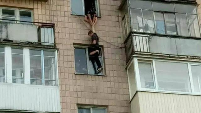 В это время офицеры полиции Виктор Бубало и Игорь Воронов бросились этажом ниже и уже там подхватили парня за пояс. На помощь патрульным пришел один из неравнодушных жителей дома Игорь Омельковец. Они держали парня, пока не прибыла помощь.