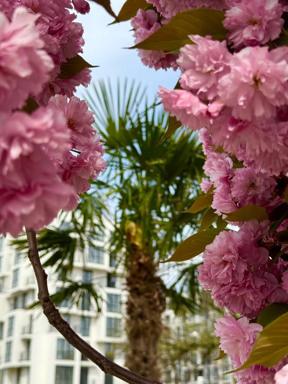 "Необычное сочетание японской вишни и экзотических пальм уже полюбилось горожанам, а фото заполонили соцсети", – отметил Глагола.