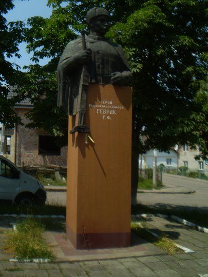 Здесь все очень просто и понятно. Это герой СССР. Памятник Геврику поставила Москва для пропаганды советского государства и советской оккупационной армии. Городские власти и некоторые люди считают, что памятник нельзя сносить, поскольку Геврик до Красной армии участвовал в национально-освободительном движении. Но при этом оставляют памятник в советской оккупационной форме,