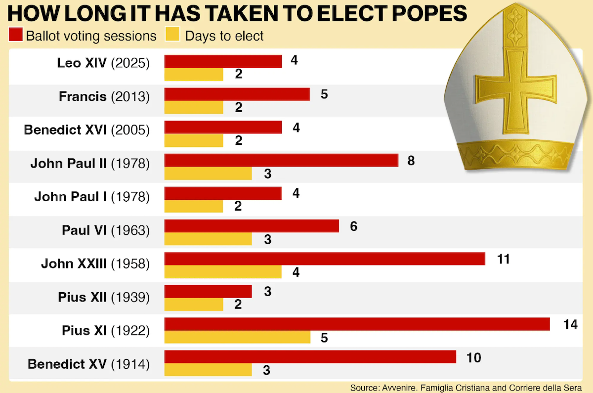 Как долго выбирали предыдущих Пап / Инфографика Avvenire