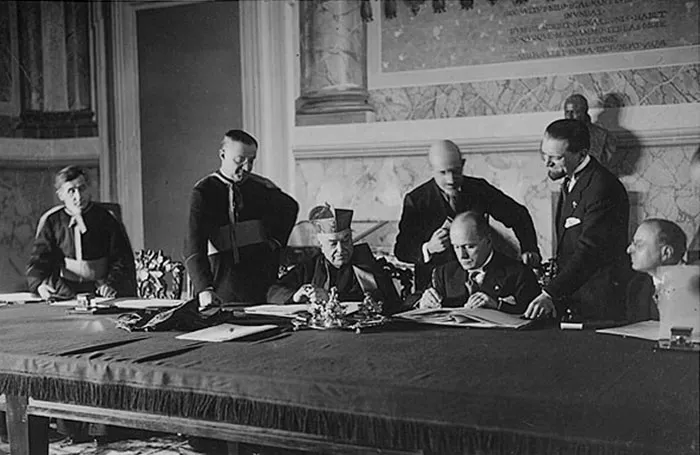 Премьер-министр Италии Бенито Муссолини подписывает Латеранские соглашения. Рим, 11 февраля 1929 года