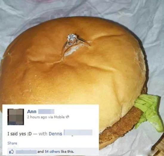 Правда, даже такое странное признание в фастфуде парень сделал романтическим благодаря приглашенному гитаристу, с которым он спел серенаду любимой, стоя на одном колене.
