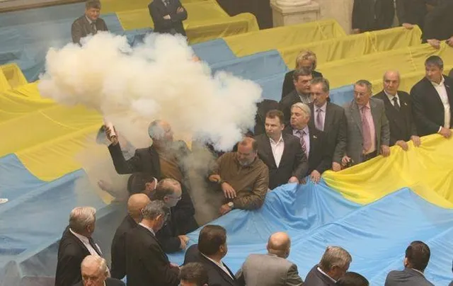 Напомним, в апреле 2010 года во время ратификации харьковских соглашений Андрей Парубий принес в зал Верховной Рады дымовую шашку, с которой пытался сорвать голосование.