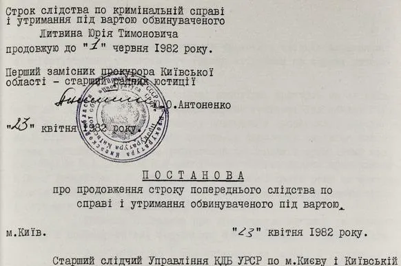 Повертаючись до процесуальних документів у справі, 1 березня 1982 року Литвину одразу обрали запобіжний захід – тримання під вартою, ухвалили рішення про обшук його речей у виправно-трудовій колонії №85 та вдома в матері.