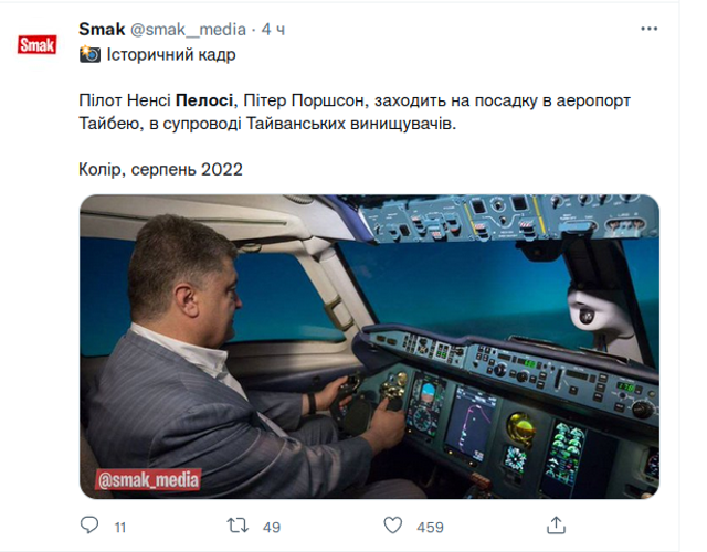 Украинцы шутят о прилете Пелоси на Тайвань / Фото "Первая частная мемория"