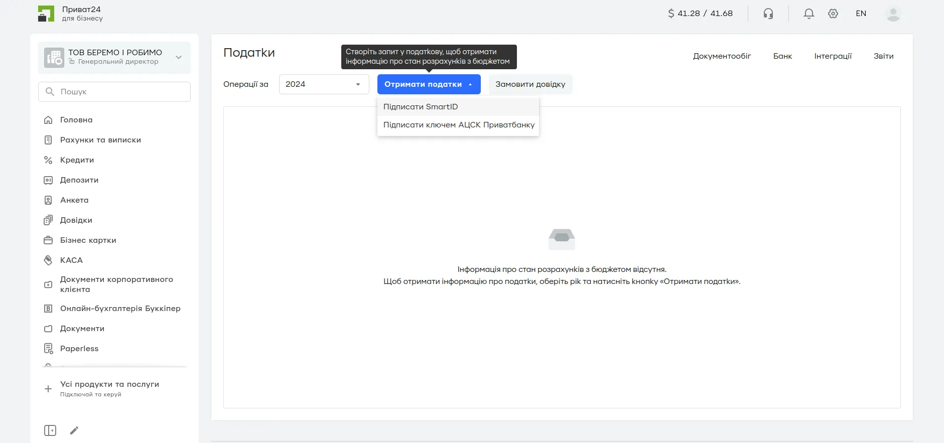 - Войти в интернет-банк "Приват24 для бизнеса".