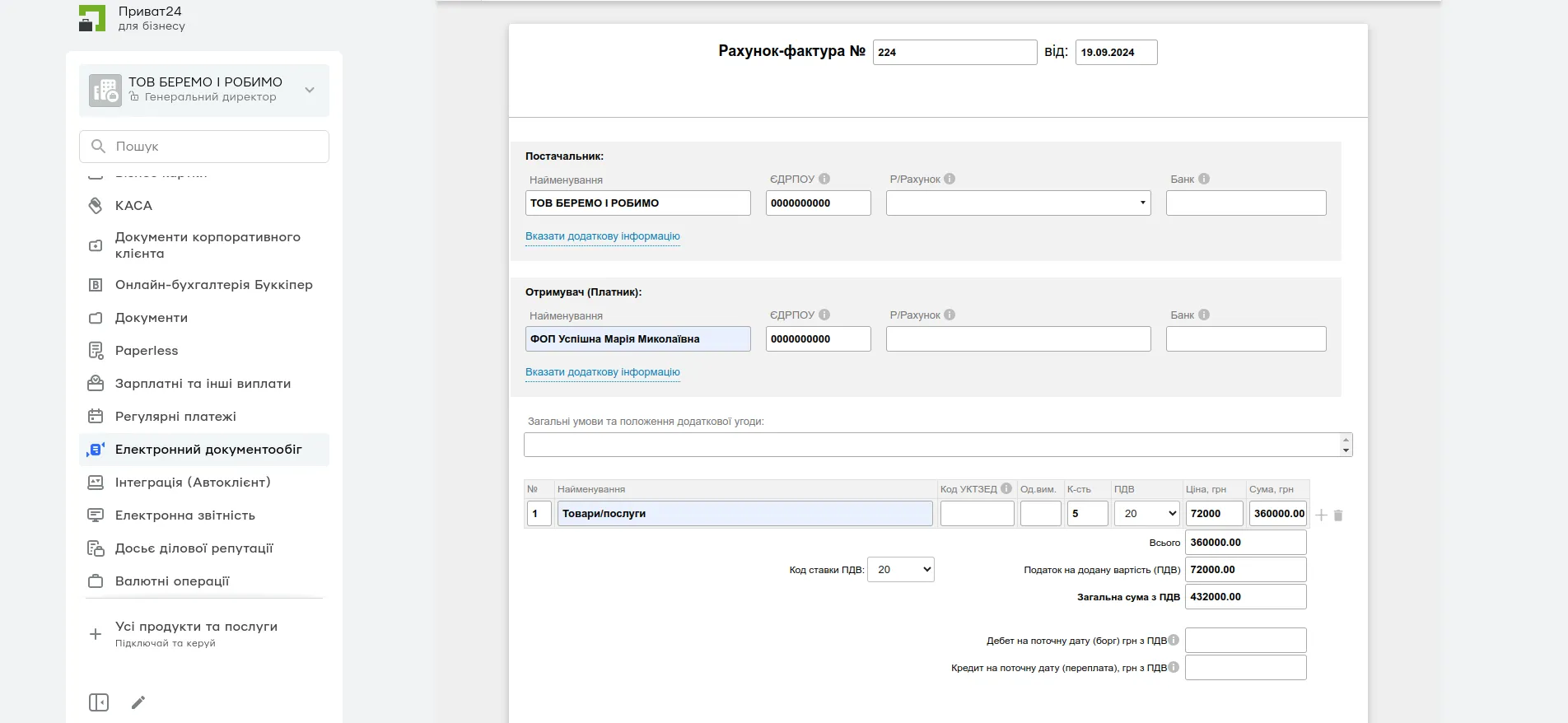 - Удобство. Оформлять счет-фактуру можно буквально из любой точки мира. Кроме того, бизнесы могут выставлять инвойс даже клиентам, у которых нет текущего счета в ПриватБанке.