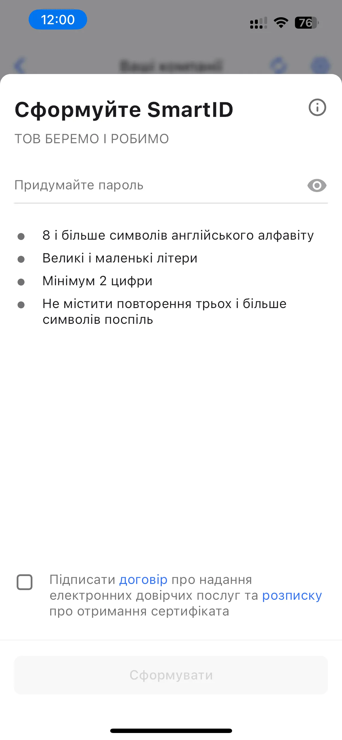 - войти в приложение – нажать на название компании и нажать "Подключить подпись SmartID". Придумать пароль от SmartID и нажать "Сформировать".