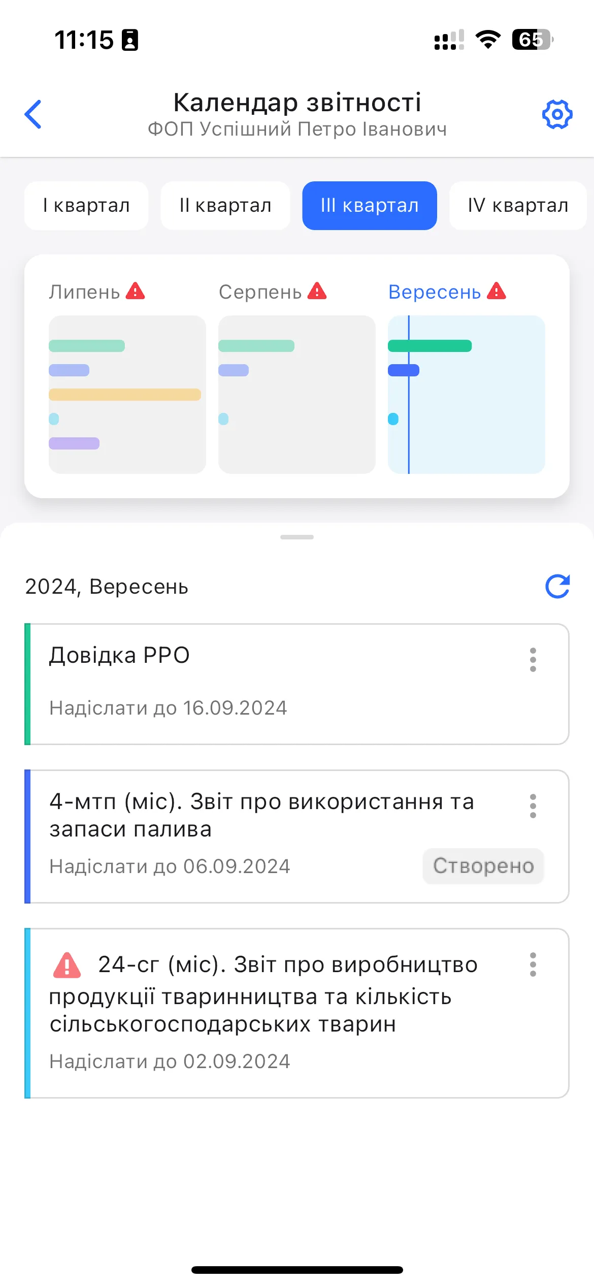 Дальше – больше! Со 2 сентября в мобильном приложении "Приват24 для бизнеса" доступна функция "Календарь отчетности", благодаря которой система предупреждает о сроках подачи отчетов, а также отслеживание их статуса. Это позволит избежать вероятных проблем из-за несвоевременной подачи отчетов, поскольку ПриватБанк просто "напомнит", когда нужно выполнить обязанность перед государством.