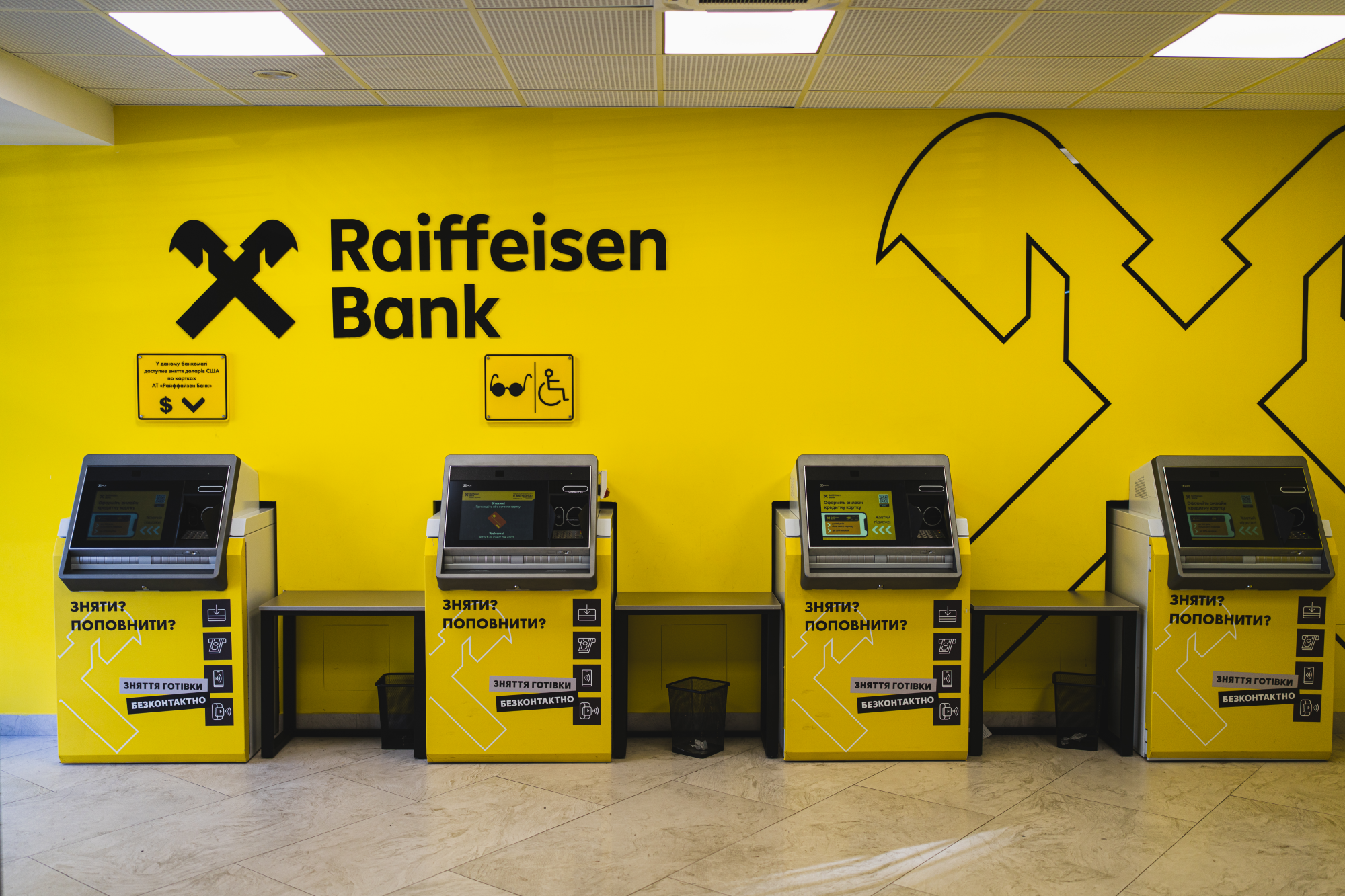 Пользование услугами валютного банкомата такое же простое, как и гривневым / Фото Райффайзен Банка