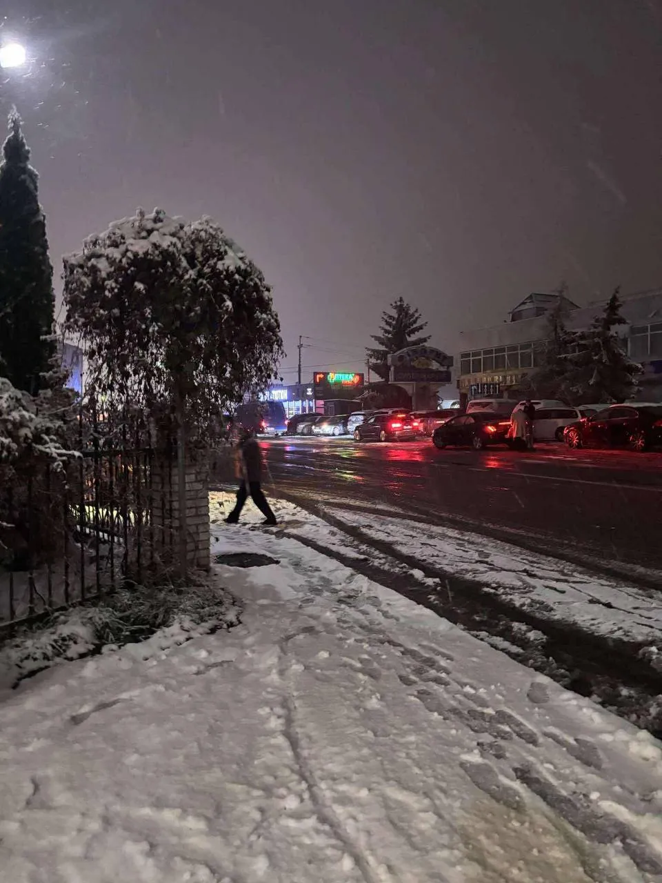 К вечеру 21 ноября город накрыли осадки, что кое-где падали в виде снега. Несмотря на то, что в основном первые снежинки таяли в воздухе, еще не долетая до земли, поверхности все же успели покрыться тонким слоем снега.
