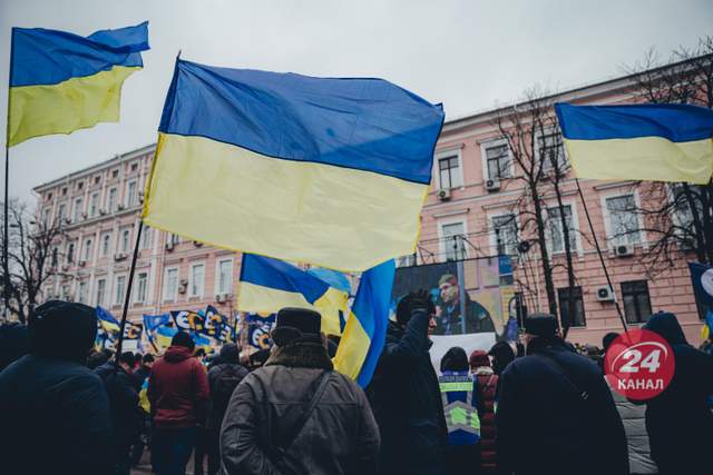Люди пришли с флагами Украины и "ЕС" / Фото Валентины Полищук, 24 канал