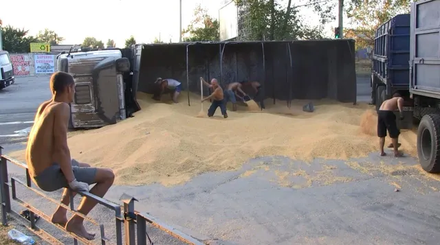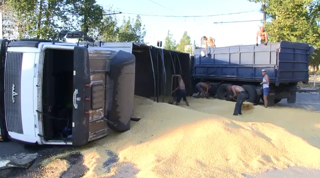 Улицу полностью засыпало зерном. В ДТП никто не пострадал, а вот кукурузу пришлось срочно убирать.