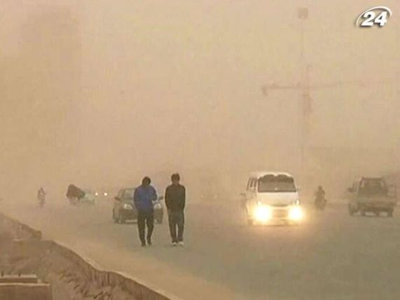 Песчаная буря пронеслась по территории северо-западного Китая. В городе Ланьчжоу из-за плохой видимости местами пришлось приостановить движение транспорта. Пешеходы, которых непогода застала на улице, прятали лица, чтобы не наглотаться песка и не задохнуться.