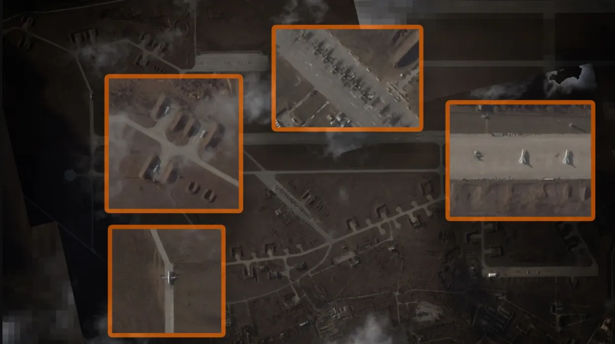 "И здесь мы видим стоянку, где размещены штурмовики и количество тоже видно. Часть очевидна в полете, потому что снимок сделан днем. Здесь очевидно часть боекомплекта возле них находится, и отсюда они вылетают тоже на юг Украины для ведения боевых действий", – заявил Денис. Томенчук.