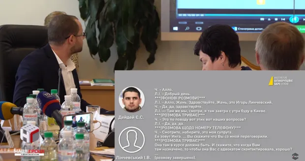 Правоохранители также демонстрировали запись разговоров Максима Полякова со своей помощницей Татьяной Любонько в рамках "янтарного дела" и Евгения Дейдея с его "одолжителем" Игорем Линчевским в рамках дела о незаконном обогащении.