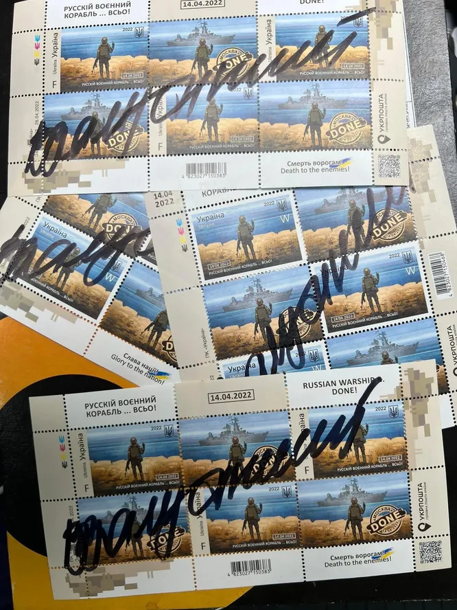 Марки, подписанные Валерием Залужным / Фото Татьяны Сохар и Анны Голубковой