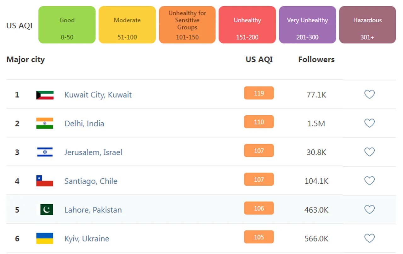 Загрязнение воздуха в Киеве / Рейтинг IQAIR