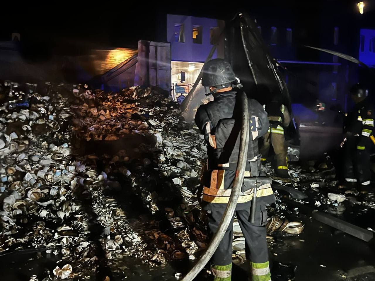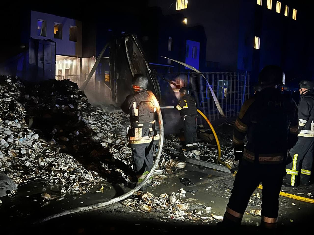 У ГСЧС Украины отметили, что пожарные ликвидировали пожар на промышленном объекте в Фастовском районе. с последствиями атаки боролись 80 пожарных, 22 единицы техники ГСЧС, а также специализированная робототехника.