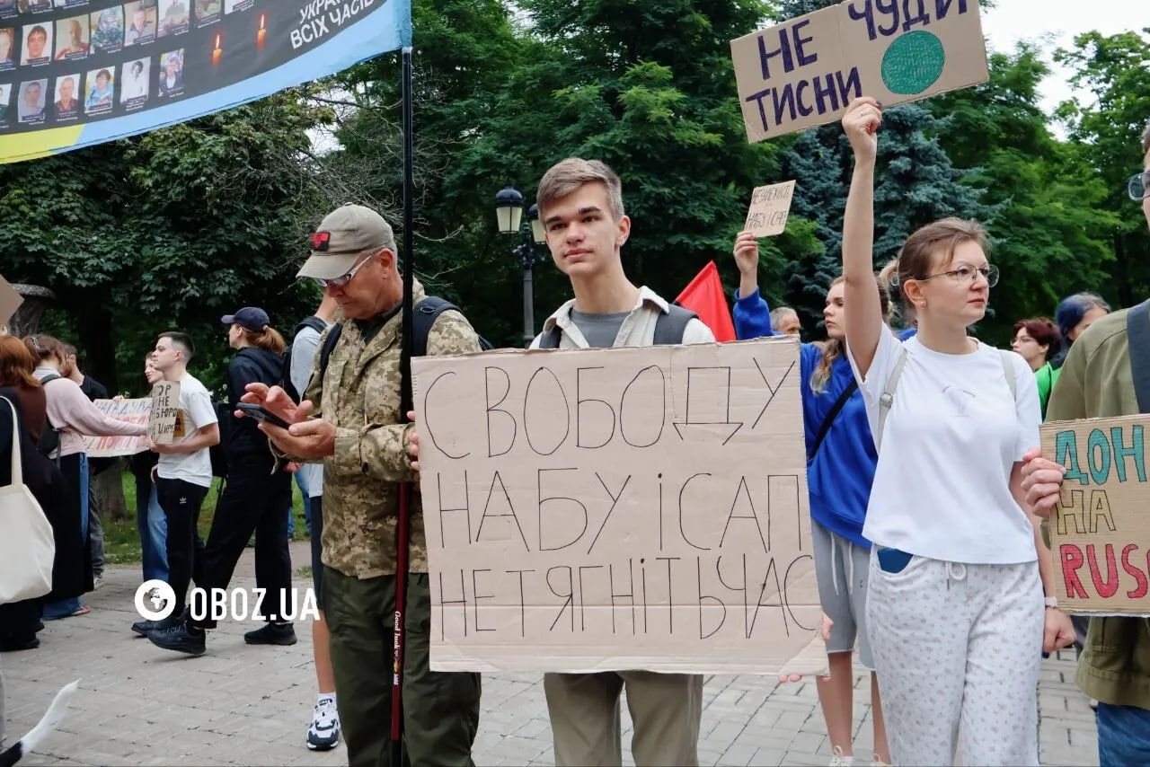 Участники протеста призвали депутатов не тянуть со временем. Они будут ждать результатов и принятия законопроекта №13533, исправляющего нормы закона, из-за которого возник скандал 22 июля. Им, в частности, в НАБУ и САП возвращается независимость, но некоторые чиновники будут обязаны проходить проверку на полиграфе.