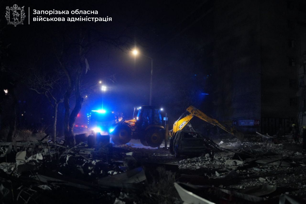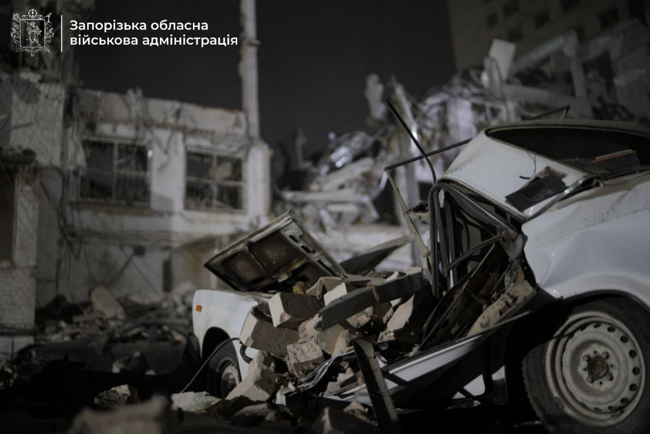 Под завалами здания, разрушенного в результате вражеского удара по Запорожью, находятся по меньшей мере восемь человек,