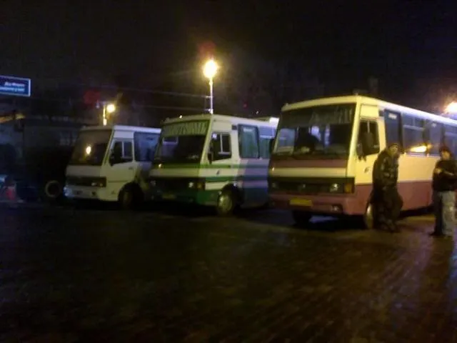 Как сообщает Цензор.НЕТ, автобусы в сопровождении ГАИ проехали со стороны Почтовой площади через Европейскую площадь и поднялись к зданию правительства.