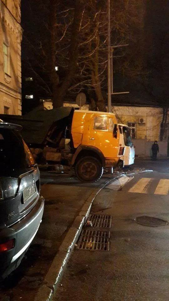 "На углу Институтской и Кловского спуска - "Беркут" и мило припаркованный КАМаз. Мимо проехало 5 больших автобусов с "Беркутом", - пишут активисты.