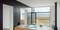 Сдержанный интерьер выполнен в черно-белых цветах, а минимум мебели и аксессуаров придают ощущение свободы.