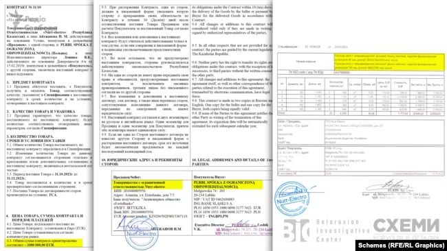 В расследовании журналисты обнаружили разногласия в контракте между казахстанской компанией Nurr-electro и польской компанией PLRBL. Контракт стоимостью почти миллион евро на поставку соснового палисада был заключен в октябре 2022 года, а поставки были запланированы на начало 2023 года.