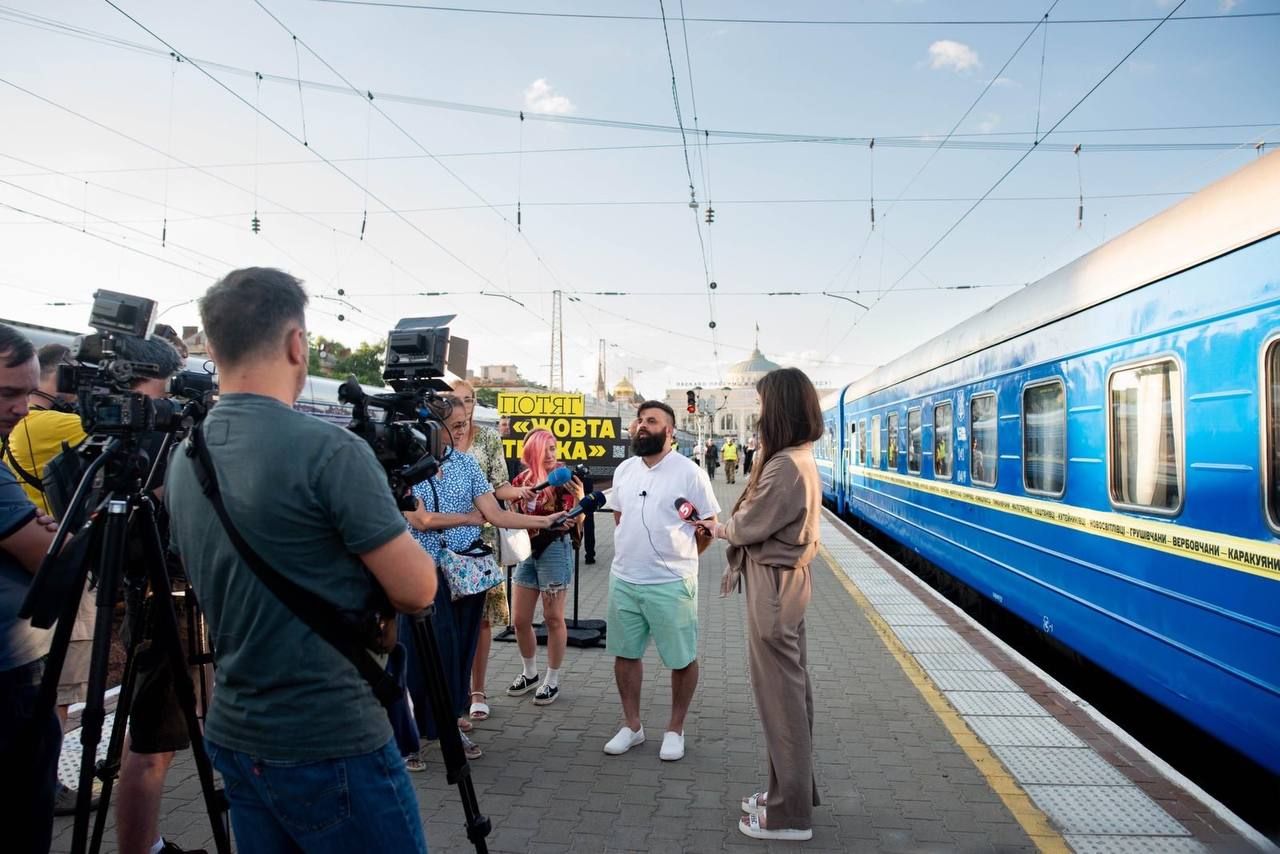 Поезд "Желтая лента" – это также и символ того, что однажды все граждане смогут сесть в поезда, которые прибудут в свободные украинские города. Чтобы поддержать украинцев на временно оккупированных территорий, пассажиров поезда Одесса – Краматорск призвали делать фотографии на фоне вагонов.