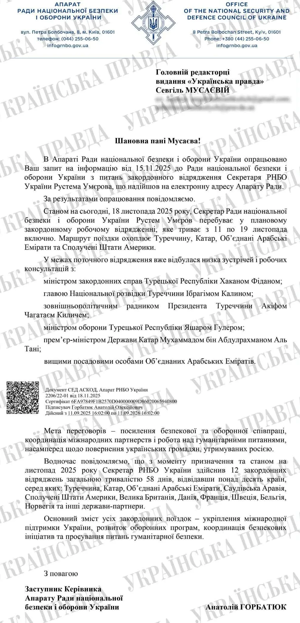 По данным СНБО, в рамках соответствующей командировки Рустем Умеров со вторника, 11 ноября, уже провел ряд важных встреч и рабочих консультаций за рубежом, в частности с турецкими чиновниками.