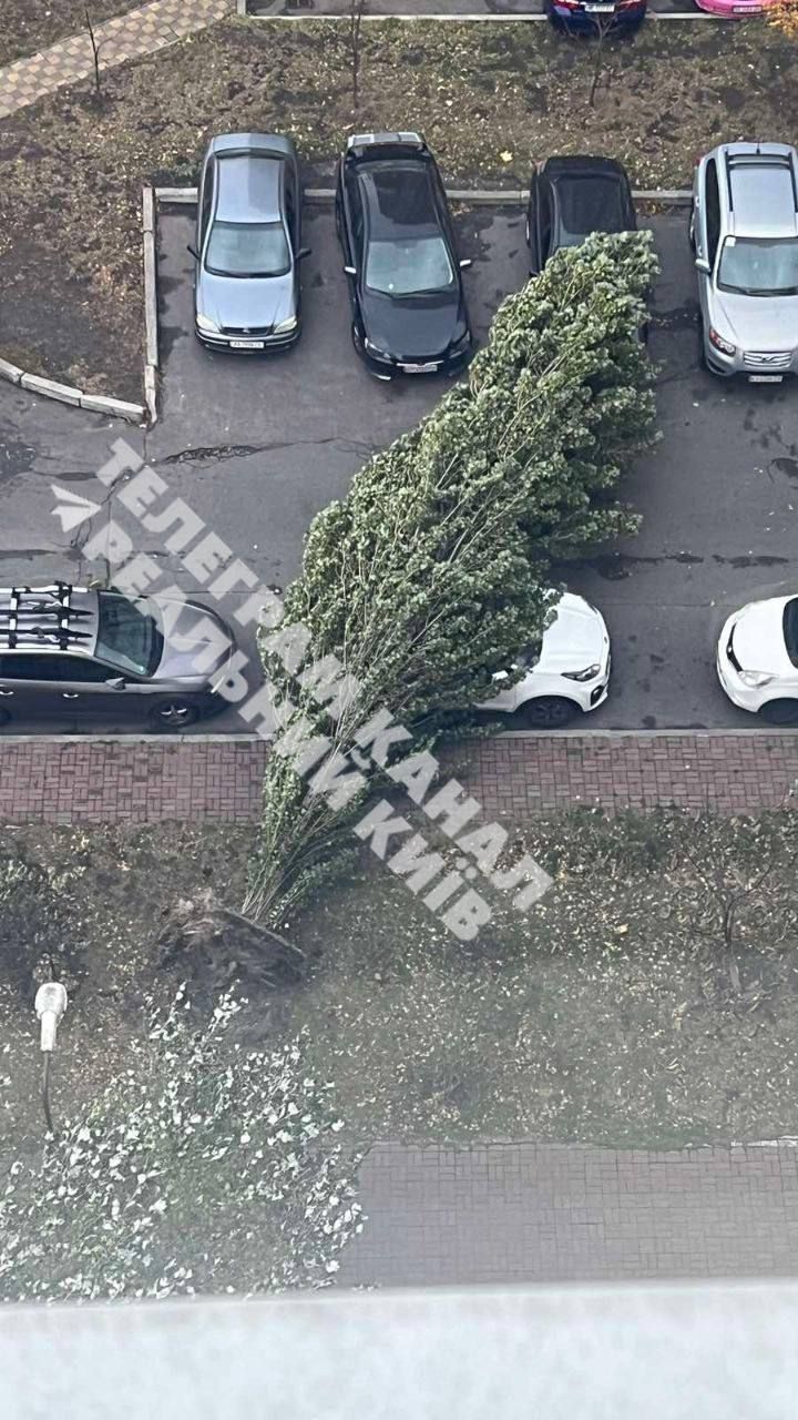 На улицах Пчилки и Симиренко ветер повалил много деревьев. Киевлян призывают держаться подальше от рекламных щитов, линий электропередач, деревьев и конструкций зданий, которые могут сорваться.