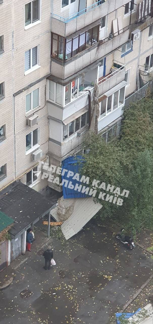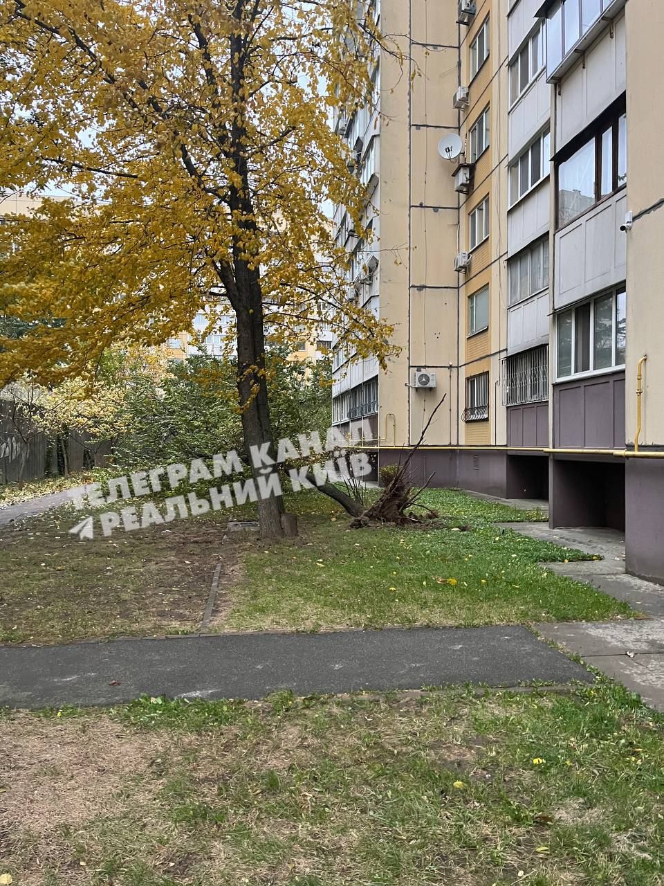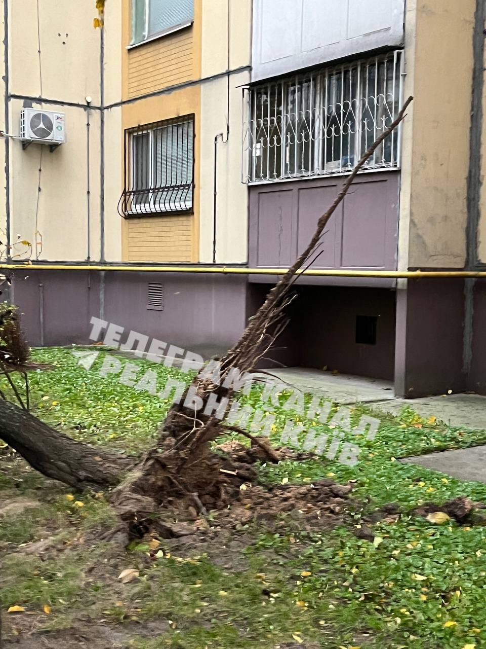 В Днепровском районе столицы дерево упало на подъезд и выбило в нем окна / фото из соцсетей