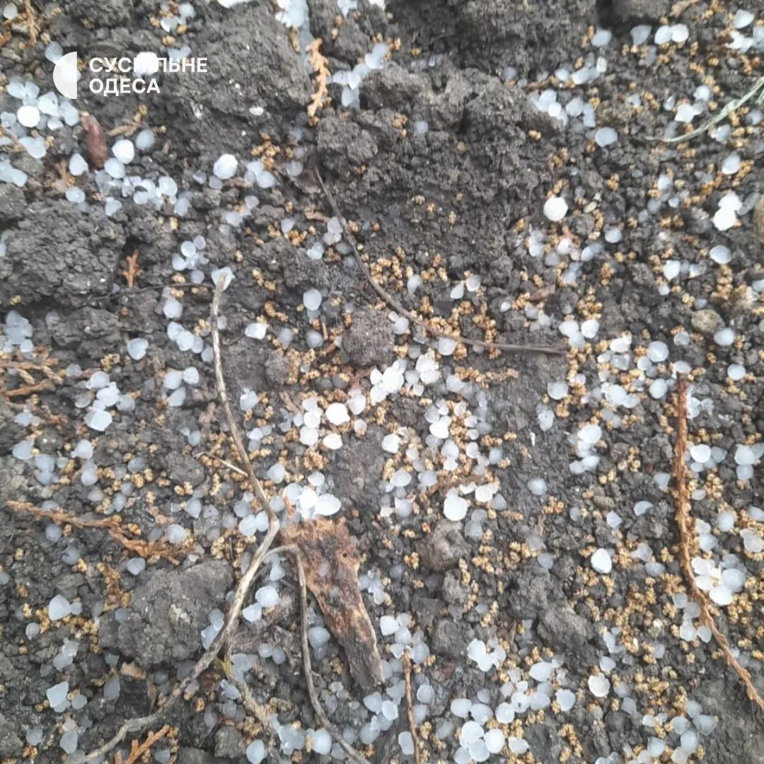 Суспильное сообщило, что, как и в столице, град выпал в Одессе и области.
