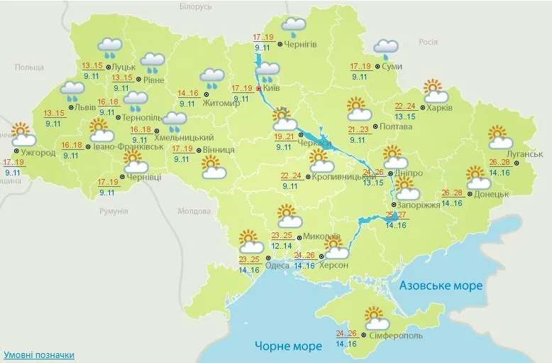 Дождливо будет во Львовской, Тернопольской, Волынской, Ровенской, Житомирской, Киевской, Черниговской и Сумской областях. На остальной территории Украины будет солнечно.