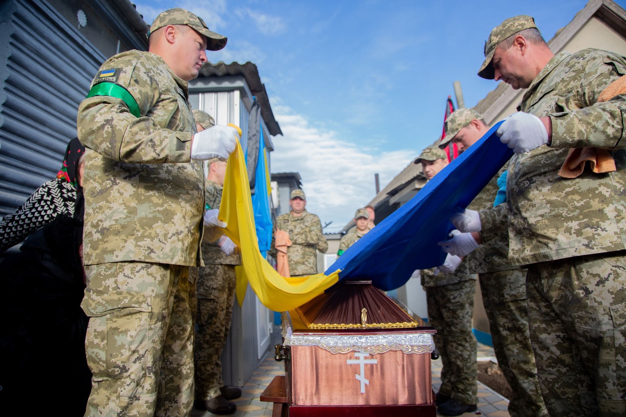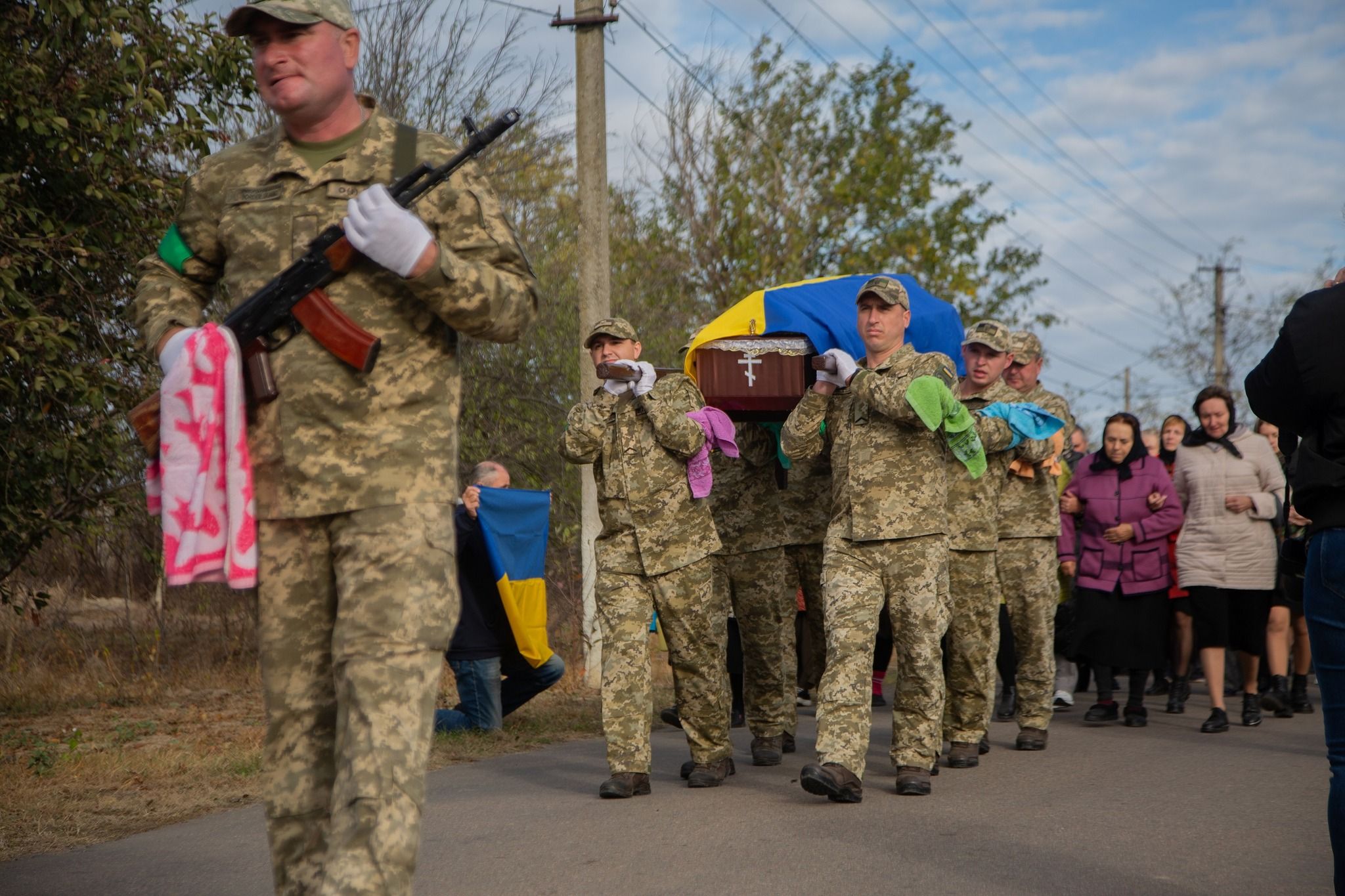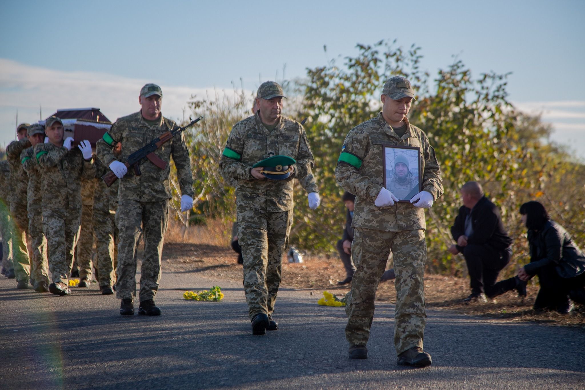 В Одесской области провели в последний путь пограничника Измаильского отряда старшего сержанта Владимира Чернова. Местные встретили его живым коридором на коленях. Он погиб 12 октября 2023, во время выполнения боевого задания в районе населенного пункта Макеевка Луганской области.