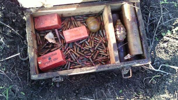 В тайнике было две тысячи патронов калибров 5,45 и 7,62 миллиметров, три тротиловые шашки, гранаты Ф-1 и РГД, дымовые шашки и устройство для снаряжения пулеметных лент.