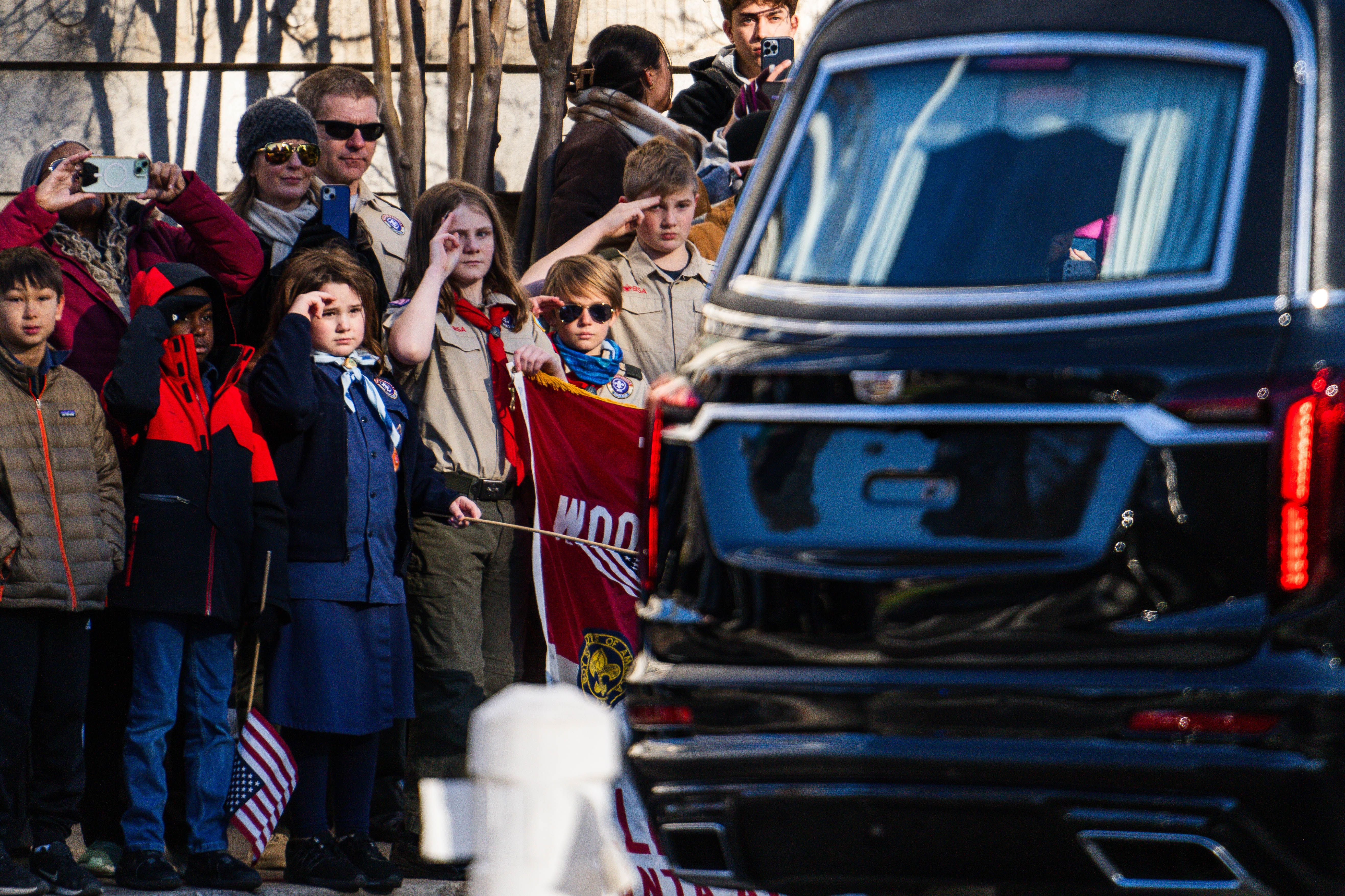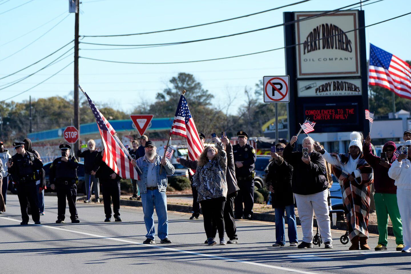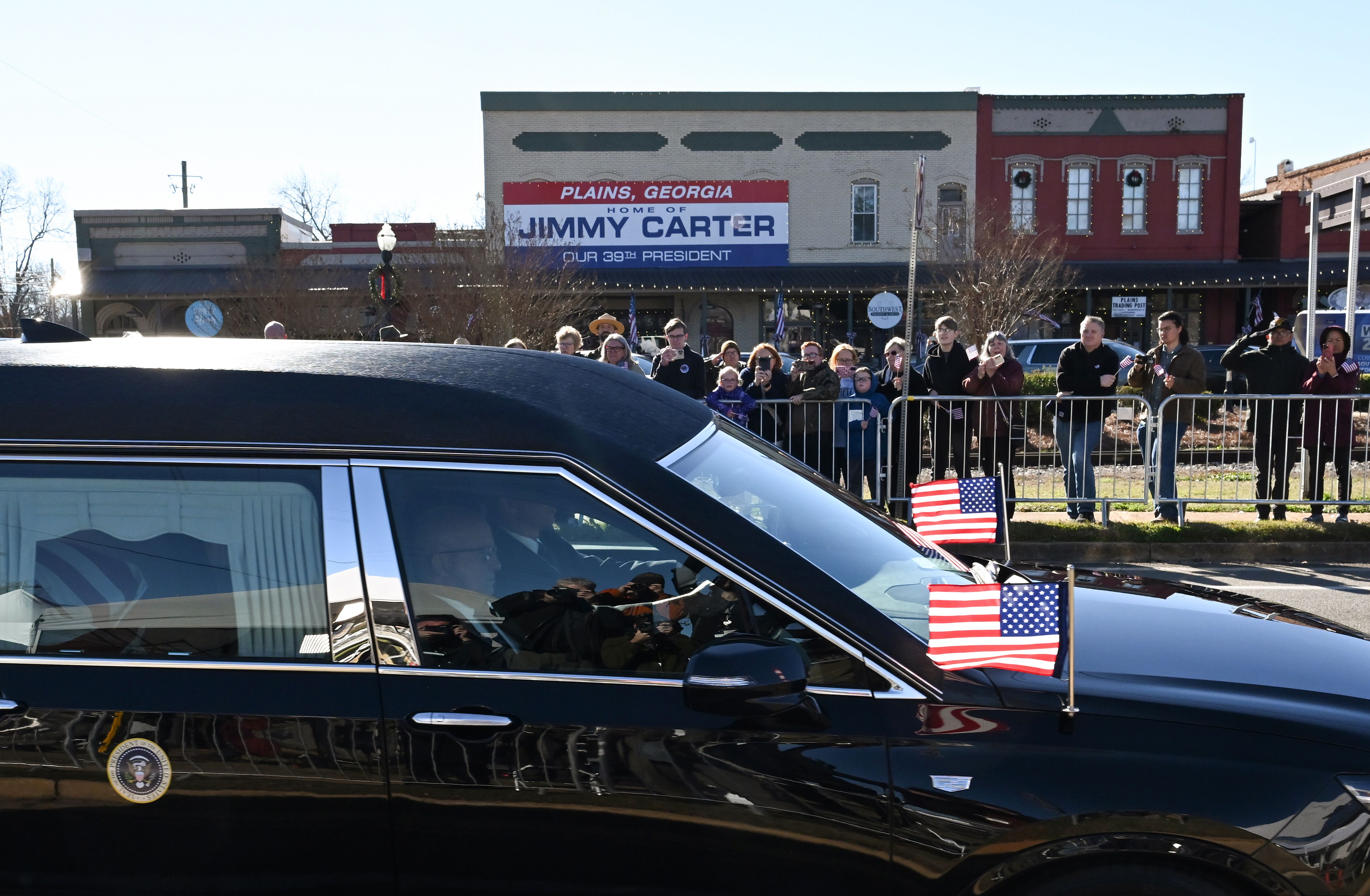 Кортеж уже останавливался возле капитолия Джорджии, где Картер занимал должность сенатора штата с 1963 по 1967 год и губернатора с 1971 по 1975 год. Губернатор Джорджии Брайан Кемп и мэр Атланты Андре Диккенс почтили память минутой молчания.