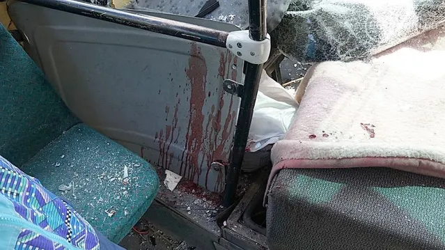 По его информации, один из военных получил тяжелые травмы, а у других — травмы различной степени тяжести. Мариупольское издание 0629.com.ua опубликовало фото из окровавленного салона автобуса.