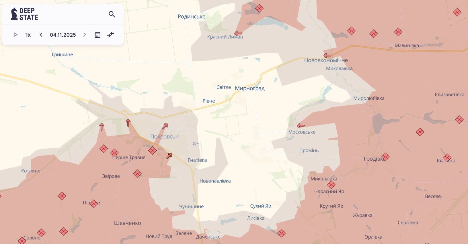 С аналитиками DeepState в некоторых вопросах согласен, но не во всех. Действия противника свидетельствуют о том, что в Мирноград он не зашел, а обходит его. Но это не означает, что именно такой замысел. Наши подразделения, которые противодействуют врагу, развеивают его планы.