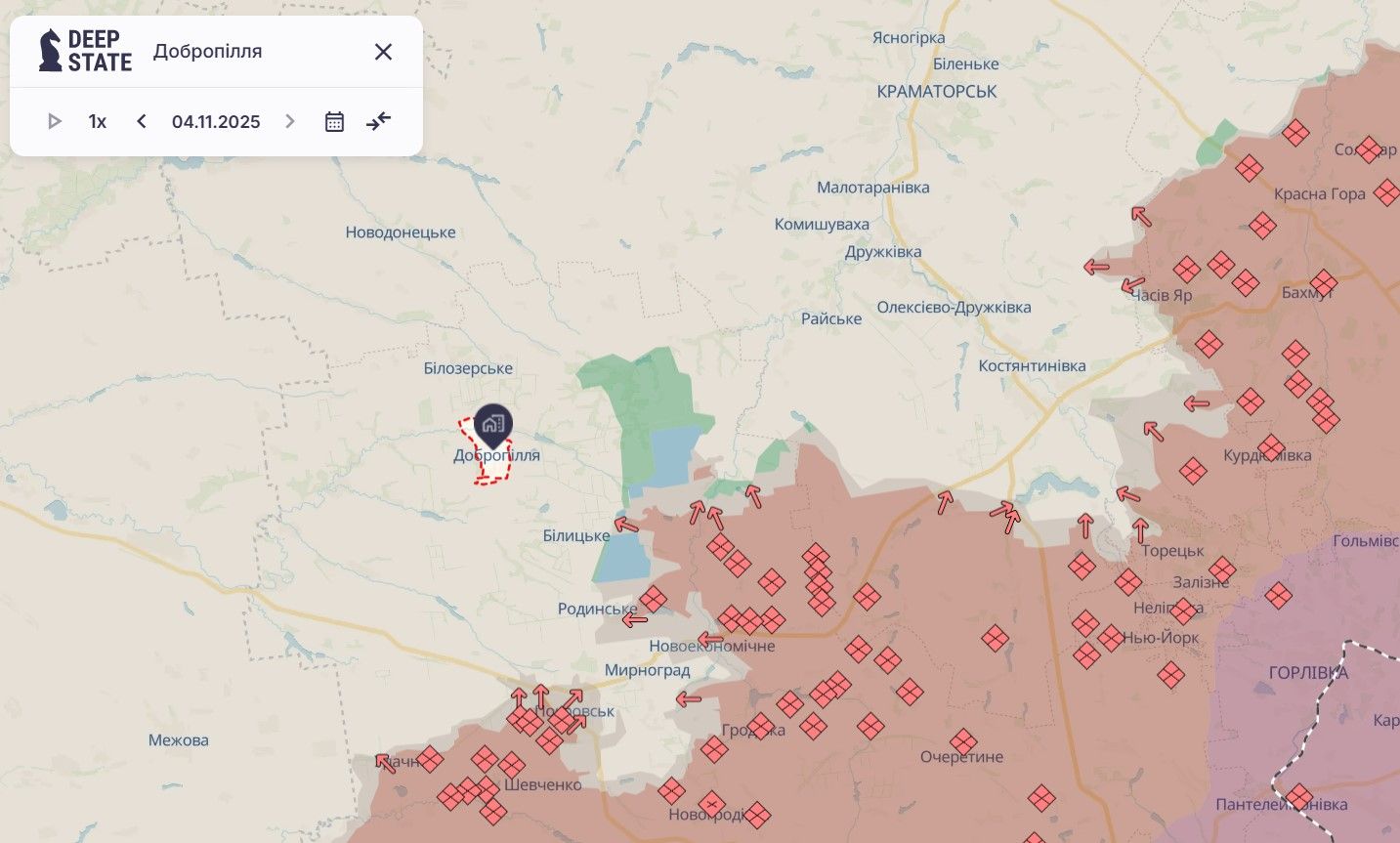 Если Покровск падет, то новая линия соприкосновения может быть в районе Доброполья / Карта DeepStateMAP