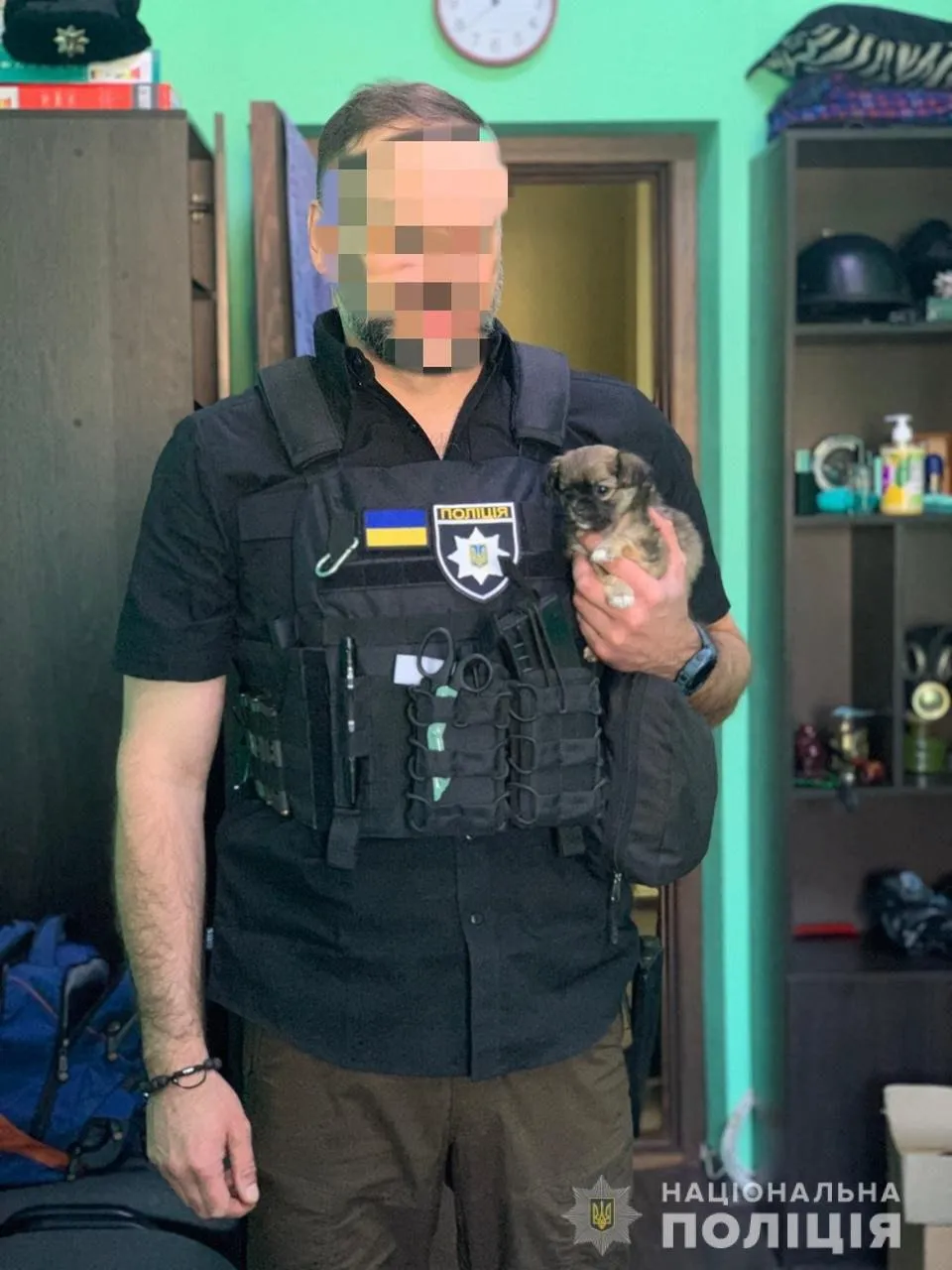 Полицейский решил заботиться о щенке / Фото Нацполиция