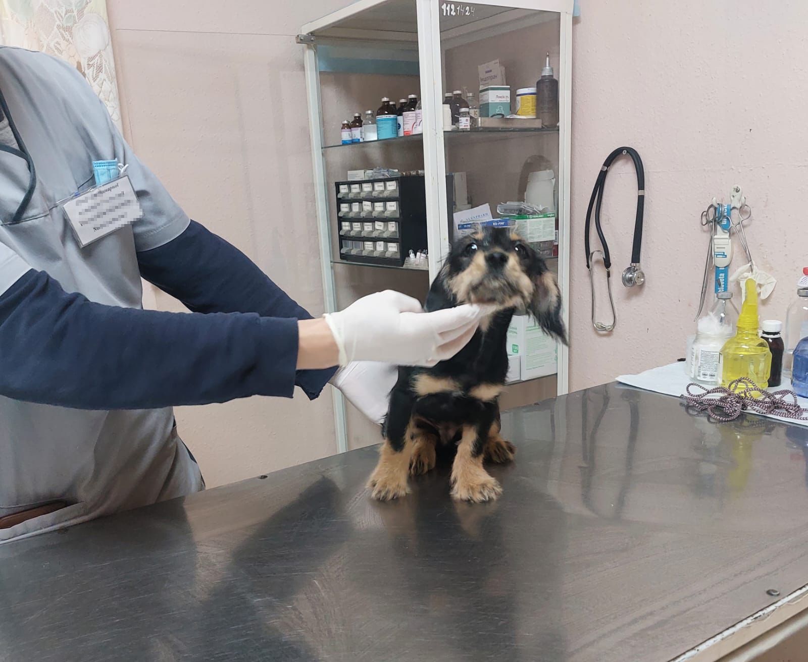 Однако уже в клинике щенку стало плохо. Ветеринары сказали, что у животного тяжелая инфекционная болезнь. Чтобы спасти его, необходима вакцина. Лекарство помогли найти врачи, двое правоохранителей их купили и спасли животное во второй раз.