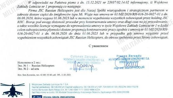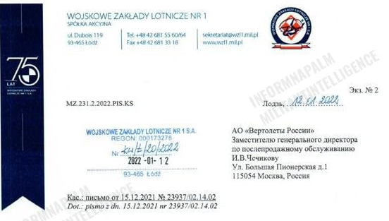 Речь идет о деловой переписке между польским предприятием Wojskowe Zakłady Lotnicze nr 1 и российским АО "Вертолеты России". Эта переписка происходила непосредственно перед полномасштабной войной, когда санкции против России за оккупацию Крыма действовали уже годами, а подготовка россиян к широкомасштабному вторжению становилась все более очевидной, передает 24 Канал со ссылкой на Inform Napalm.