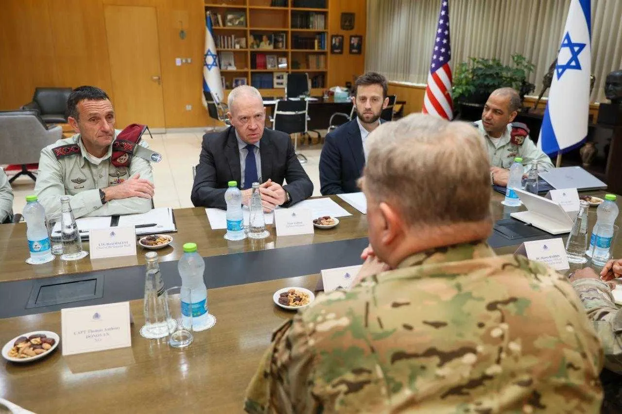 Начальника штаба ЦАХАЛа Герци Галеви (слева), министр обороны Йоав Галант (второй слева) ведут переговоры с генералом Марком Милли, председателем Объединенного комитета начальников штабов США / фото GPO