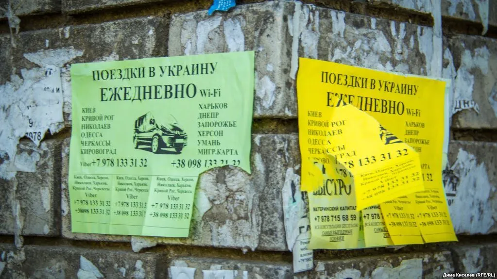 Объявления о ежедневных автобусных рейсах из Феодосии до материковой Украины